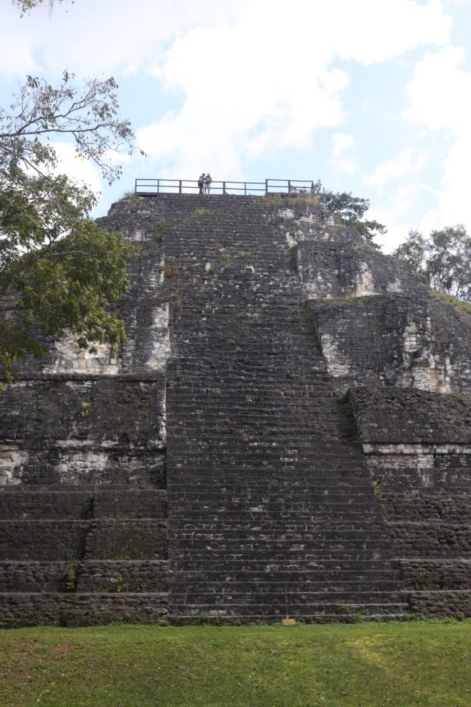 Naast de Maya tempels voel je je best nietig. Indrukwekkende bouwwerken in een prachtige omgeving. Tikal is een junglegebied met 4000 tempels, waarvan er “maar” enkele tientallen zijn blootgelegd. We hebben heel veel “heuvels” gezien die in werkelijkheid begroeide tempels zijn. Ze liggen steeds in een bepaalde verhouding tot elkaar, afhankelijk van de functie. Zo maakten de Maya’s gebruik van de momenten van regenval en de stand van de zon om de gewassen beter te laten groeien. Ingenieus!