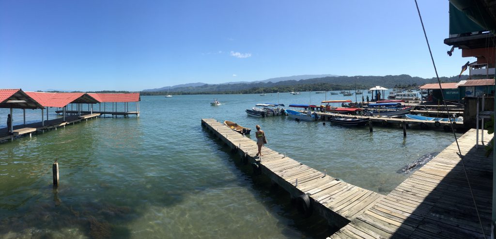 Livingston zelf viel ons nogal tegen. Uit diverse stukjes op internet hadden we opgemaakt dat het een Caribisch aandoend stadje zou zijn. Nu heerst er inderdaad een wat andere sfeer en de bevolking is wat meer divers, maar verder niets nieuws onder de zon. We kozen dan ook een overdekt terras aan de baai en hebben daar heerlijk genoten van het uitzicht, onder het genot van een lunch.