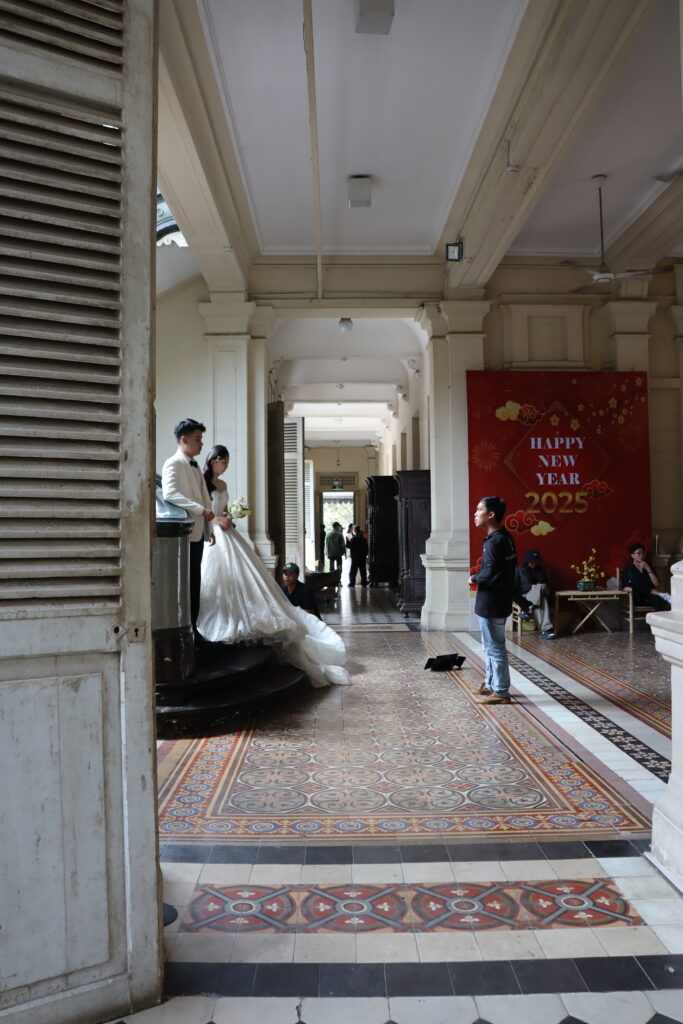 Het Ho Chi Minh City museum geeft info over de geologische, archeologische en culturele achtergronden van het gebied. Het heeft bovendien een brede, marmeren trap die heel aantrekkelijk is voor bruidsparen. 1 bezig, 1 in de wacht op de achtergrond. Zou trouwen hier ook op maandag gratis zijn?
