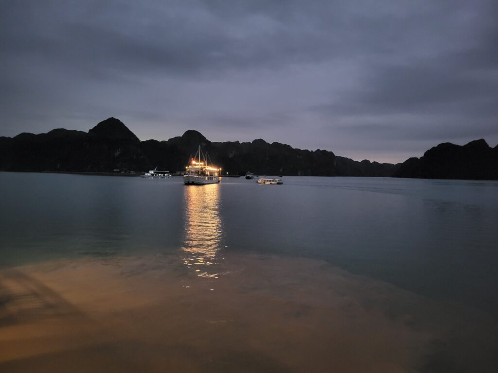 Ik had ook getwijfeld aan Halong Bay omdat hier veel toeristen naar toe komen. Het gebied is echter groot en iedereen vaart rustig. We liggen nu voor anker en ik zie vanuit mijn kamer geen andere boten. Valt alles mee dus.